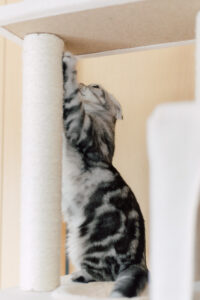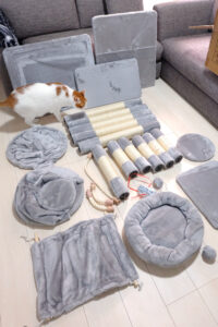 - 耐久性に注意:爪とぎ部分は最も消耗が早い部分です。我が家のキャットタワーでは、数か月で縄がほつれてきて、中の柱が見え始めました。これ自体は猫が元気に爪を研いでいる証拠でもあるのですが、長く使うためには交換パーツが用意されている製品を選ぶと安心です。安価なものだと替えが効かない場合もあり、数年単位で丸ごと買い替える必要が出てきます。結果的にコストパフォーマンスに差が出るため、購入前に耐久性を確認しておくことが大切です。