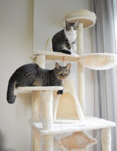 - 多頭飼いで遊び場を増やしたい家庭:複数の猫がいる場合、キャットタワーは絶好の遊び場兼縄張りスペースになります。上下で分かれて過ごせるため、猫同士の距離感をうまく保つのにも役立ちます。