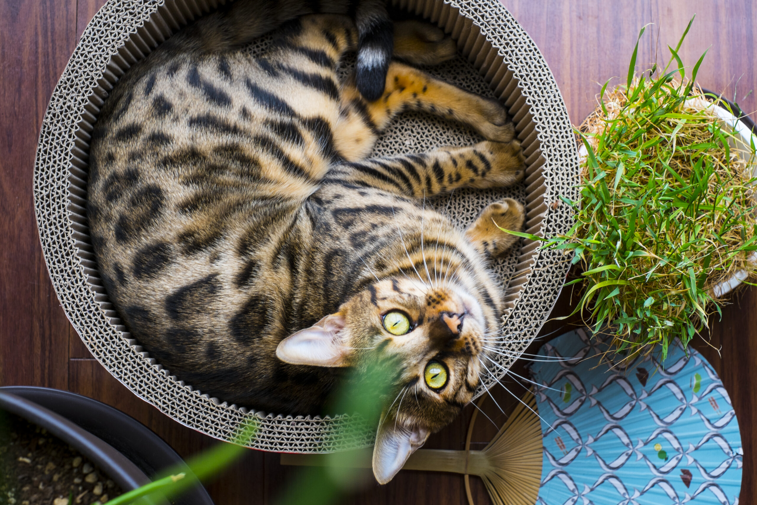 活発な若い猫には、遊びと運動を兼ねた大きめのキャットタワーや爪とぎ器を。